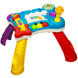 The Rocktivity Sit to Stand Music Skool is a musical activity table with more than 50 songs, sounds and activities geared towards children 6 months up to 3 years old. It features digitally re-created music including The Jackson 5’s “ABC,” The Hit Co.’s “I Like to Move It,” Jennifer Lopez’s “On the Floor” and the Beatles “Twist and Shout”.